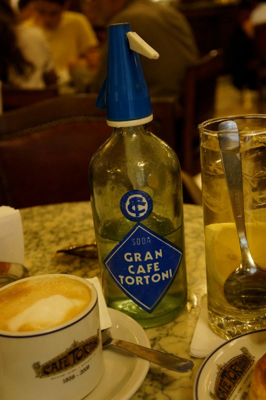Arturo se strecoara cu tava printre mese, e o poezie sa-l privesti dar totusi nu se compara cu Angel care are 35 de ani la Tortoni, parul umflat si parca pudrat, pare sa-i fi alunecat int-o parte, e rupt din Sabotage al lui Beastie Boys. Senor Angel, senor Angel, oare sa ii spun? habar n-am cum si oricum nu conteaza, uite cit de frumos se misca, zambeste, se apleaca, nu are acreala retinuta a lui Arturo, face fotografii turistilor americani cu o incantare sincera, intra in vorba, iese din vorba, poftiti comanda dumneavoastra. Desi salonul e plin de brand manageri, croitorese si soferi, Angel se poarta de parca toti am fi Borges sau Sabato sau Benito Martin, ce conteaza ca domnu de la masa 2 e gras si transpirat si vorbeste tare la telefon, ca duduia asiatica se scobeste in nas si extrage un iepure mare, gri pe care il sufoca in servetelul de linga ceasca de cafea, ta-na.
