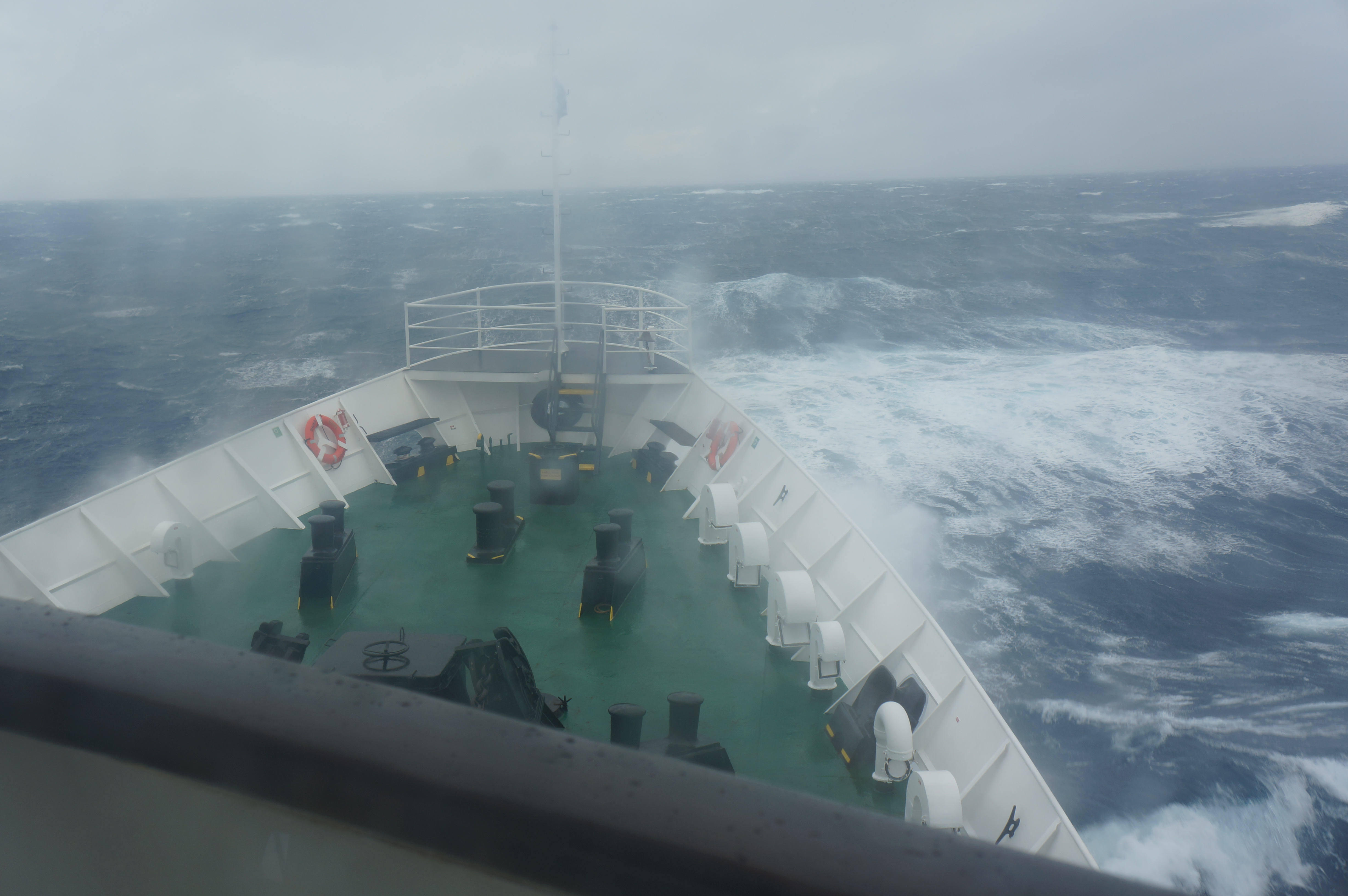 Zbanggggg, sertarul zboara, loveste scaunul, impreuna se izbesc de chiuveta, sticla computerului se face tzandari, ruliul e atat de mare incat nu te poti tine pe picioare, valuri de 7-8 metri se sparg pina la puntea de comanda, pastilele nu au niciun efect, tu-i mama ei de viata. Ma urnesc spre micul dejun, japoneza e alba, priveste fix prin geamul stropit valurile care terfelesc vasul in timp ce o baba imbecila rade de ea, ascutzit, ca o hiena, baba are patch, mori, mori acum, baba se-npiedica intr-un hohot, cade pe punte si-si sparge rotula, rahat, wishful thinking. Copiii lui Klaus borasc pe rand in pungile lipite cu scoci de barile de sustinere din sala barului, nici macar nu pot sa ma gandesc la mancare, albatrosi se invart in jurul navei, sa ies sa le ofer pastele cu fructe de mare de aseara? ma intind in cabina si astept sa crap dar surprinzator adorm. Oceanul se linisteste, e soare, Hugo, marinarul olandez ma combina la o supa, clicclacclicclac, un japonez antipatic, usor partzar face 13000 de poze pe secunda cu 3 aparate, hai pe puntea de comanda, avem voie s-o vizitam doar intre 8 dimineata si 8 seara, un ofitzer zice ca furtuna compenseaza vremea frumoasa din ushuaia si ca poate am scapat, poate nu, haoleu, supa urca la omuletz dar numar pina la 43 si reusesc s-o bag inapoi in burta.