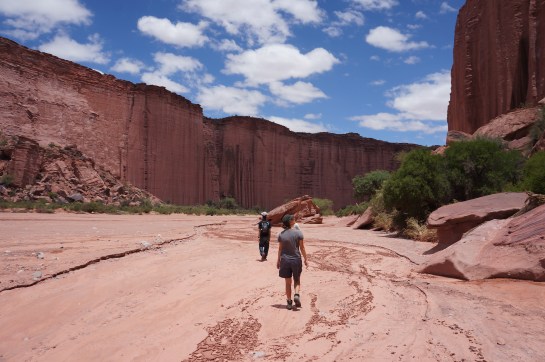 Parcul national Talampaya este un soi de bellu al triasicului, toti baietii sunt ingropati aici, sub metri si metri de aluviuni si pietre, tropaie pe ei acum armadillosi si pume si guanacosi, calc apasat eu, guido si sergio, ghidul parjolit de soare care a crescut intre oase si pietroglife, imi freaca sub nas o pastaie uscata, “gusta”, la call to action nu pot sa fac nimic decat sa ma execut, pastaia e dulce si sergio insira zaharurile pe care le contine, “vezi albia asta de rau?”, clar, “cind vine viitura din munte dau fuga repede si aduc undita, poate poate prind ceva”, deschid gura ca un crap, musc nada, sergio rade, e clar ca trebuie sa joc la loteria vizelor, prost sa fii, noroc sa ai, peretele defileului se inalta gigantic in fatza noastra, e “the lost world”, platoul izolat unde triasicul cotinua la fel de linistit precum comunismul in coreea de nord, doi condori zboara enorm deasupra, “condorii isi aleg perechea o singura data si daca ea moare, supravietuitorul zboara in inaltul cerului, isi strange aripile si nu le mai deschide, cade ca o piatra si moare strivit decat sa traiasca fara celalalt”, sergio e serios, “verdad”, subliniaza legenda cu o miscare hotarata de mana, la el in sat oamenii vanau pe vremuri condorii ca sa le manince inimile si sa fie la fel de longevivi si puternici ca ei, a venit asteroidul civilizatiei si a stins traditiile astea barbare, nimeni nu mai vaneaza aici, decat turisti, e sezon, vin cu miile in fiecare zi, isi pun fundul intr-un camion si baga vreo 3 kilometri prin praf de oase de dinodontosaurus si condor si armadillo si riojasaurus, zic wow, bifeaza, pozeaza, socializeaza, nimeni nu tace, nimeni nu asculta, ce?