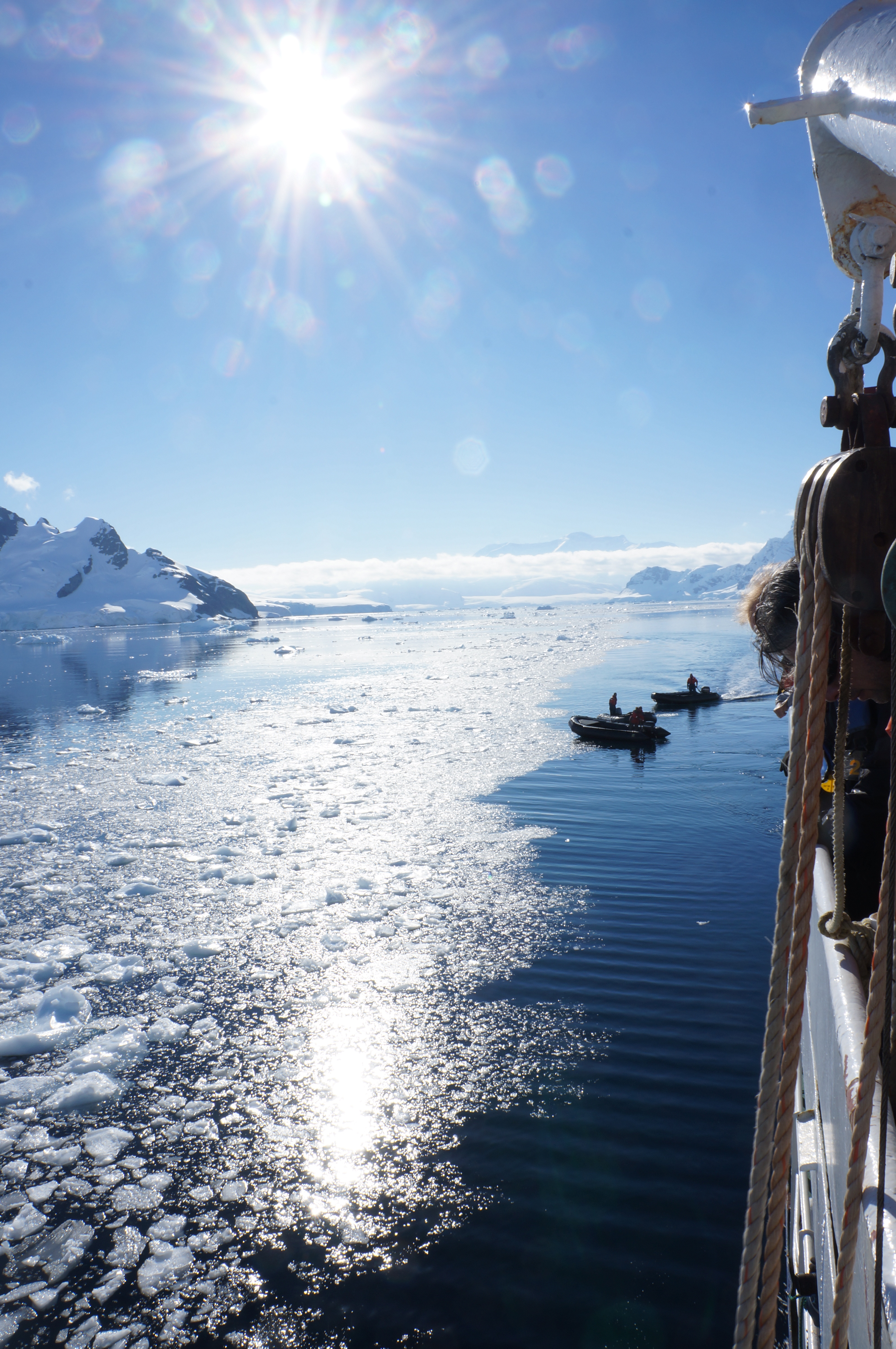 Alberto vine de 8 ani in antarctica, are 180 de traversari ale lui drake pasaj si-si face cruce cind se uita la soarele din crucea cerului, n-am mai vazut asta de prin ’04, daca bagi o citirica poti sa stai chiar si in tricou pe punte, explozii solare, zdrang-bum-bang, mi-am parlit buzele, sunt uscate si fosnesc cind vorbesc, Tobias e pe chill, atarna de-a dreapta capitanului la o tzigara, e inginer de ape ca omu cu trei mandate si bate america de sud in cautare de job, prietenie si eventual casatorie, fetele se-nebunesc dupa accentul scrasnit “io soi de hamburgo donde se come hamburghesa mui bueno”, micutza nair, da, da, fetisoara care a castigat 2 locuri pe ushuaia desenand niste pinguini 3D, ar vrea sa guste hamburghesa din hamburgo da’ trebuie sa mai creasca macar un an.