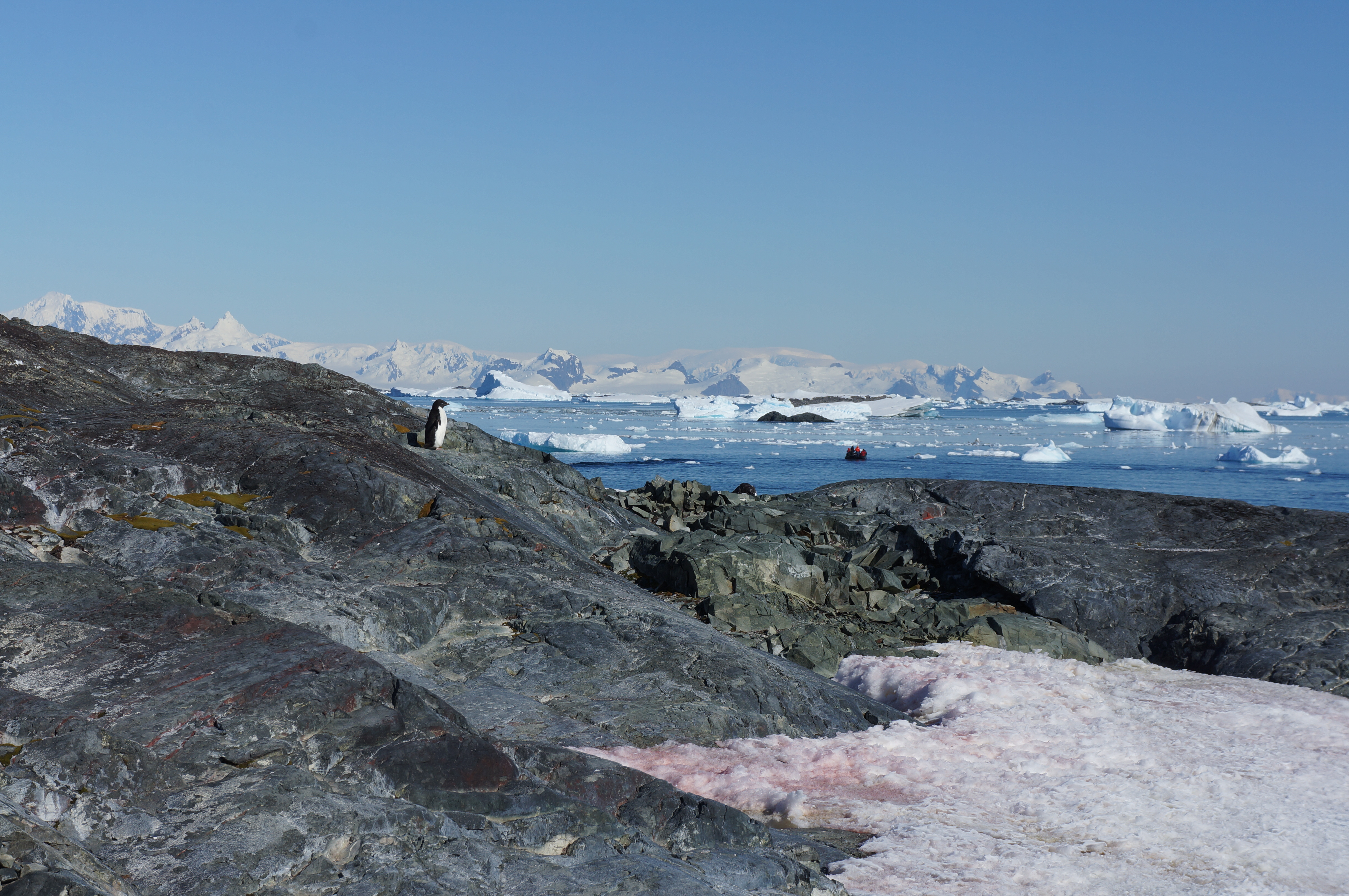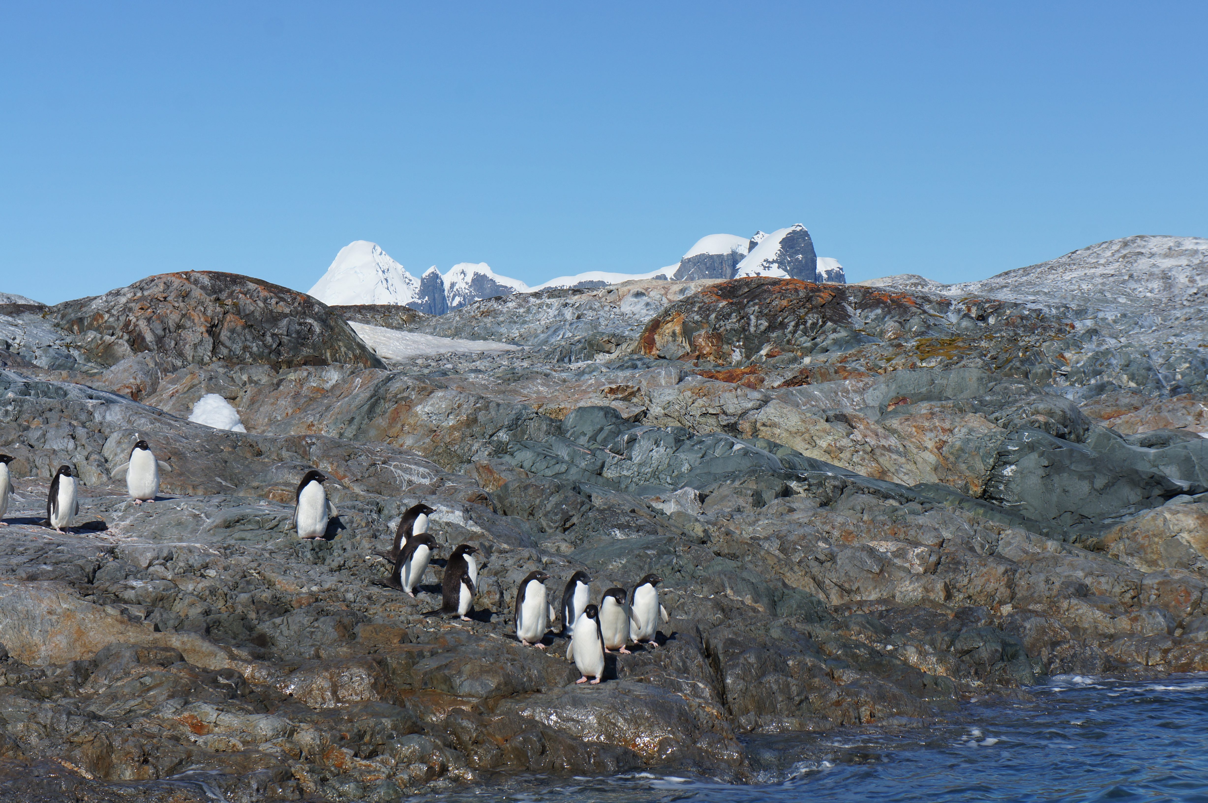pinguinii adelin se-ncoloneaza ca pelerinii polonezi la pupat poala papei, s-a dus unu la apa l-au urmat totzi, putine idei, clipesc tamp din ochii albastri si parca nu put atat de tare ca verisorii gentoo, na ca i-am vauzt si p-astia, acusi o luam agale inapoi in nord, pe sloiuri se coc foci cu fetze rotofeie de turiste estgermane, rusul boscorodeste in camera video date si fapte: acum plecam de linga insulele yalours, 65,15 grade latitudine sudica, ne apropiem de juna’s tits, uat is titz? augustin palpeaza niste sani enormi, ahaaa, rusul se imbujoreaza intimidat, da, mama rusia le are si mai mari ca juna, cupa R de la rubensian.
