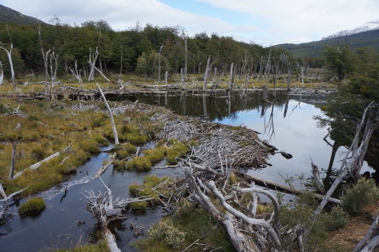 Niste lemne blocheaza un curs de rau, e o castorie, s-au inmultit ingrozitor, au distrus padurile, acum niste ani primeai 100 de pesosi pe un castor mierlit, mai mult decat pe un indian selk’nam, si guanacosii sunt o pesta, despre vulpi ce sa mai vorbim, de chinezi ce parere ai susana? turistii se-nghesuie la poza la capatul rutei 3, a mai asfaltata sosea din patagonia, de fapt singura, mii de kilometri pe macadam, pai de ce crezi ca mi-am luat transporteru, bag si cate 1000 de kilometri pe zi, fetele stau in spate, dormim inauntru, gatim, trebuie sa merg la chilieni sa-mi mai iau unu, nu-i suport ca i-au ajutat pe englezi in razboi, tradatori ticalosi, dar au masini mai ieftine, trebuie sa bag banii in ceva.