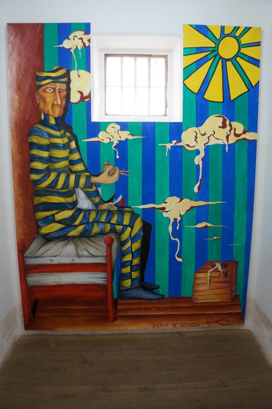 si aici si-a baut ceaiul si si-a citit ziarul x-ulescu, detinut politic, de fapt gemea puscaria de anarhisti, baietzii cu fightclubul, toata lumea toata lumea sare acum cu mine, buenosul bubuia si nu numai de la bumul economic, nenicul asta a fluturat pumnul si vreo 3 manifeste, bingoooo, avem un castigator, l-au saltat, l-au bagat la cala si l-au trimis in tara de foc sa puna mana si el pe o carte, soarta politicilor a inmuiat inimile intelectualilor locali care i-au ajutat sa fuga, tzust, au taiat-o in chile, a fost singura evadare de succes din istoria inchisorii din ushuaia, restul au sfarsit murind de foame, de frig, unde sa scapi cind piciorul iti fuge de pe harta?