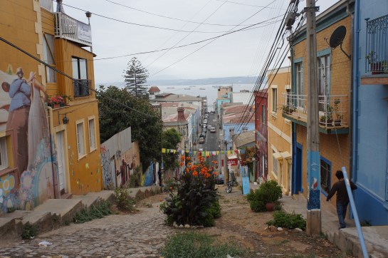 ma trezeste stomacul cu niste injuraturi in romana, spaniola si ganeza, orasul e mai pictat decat acum 2 ani cind mi-a curs nasul pe aici, pe cate-o cornisa tineretu atarna la un suc si-o maricica, “el terror” zice un baietas s-apoi trage cu sete dintr-un jointache, din 2 in 2 metri sunt hosteluri, toata california e aici, gramezi de hipsteri colinda magazinele de hainitze si portofelase si posetutze, uau, luc et det, carciumi se-nghesuie una-n alta, hai la conception unde-i vista a mai smechera si cevichele mai zemos, domnu, domnu, in ce parte e santiago? cine? santiago, aaaa, am auzit de orasul asta, cred ca e pe linga tokio, valparaiso nu-i in chile, aici nimeni nu protesteaza decat ca berea nu-i indeajuns de rece, chiar asa, cum va permiteti? welcome to jurassic park, astia au si ei bani de plastic, ca sa reziste la umezeala si cind scuipi si-i lipesti pe fruntea chelnerului, noapte buna.