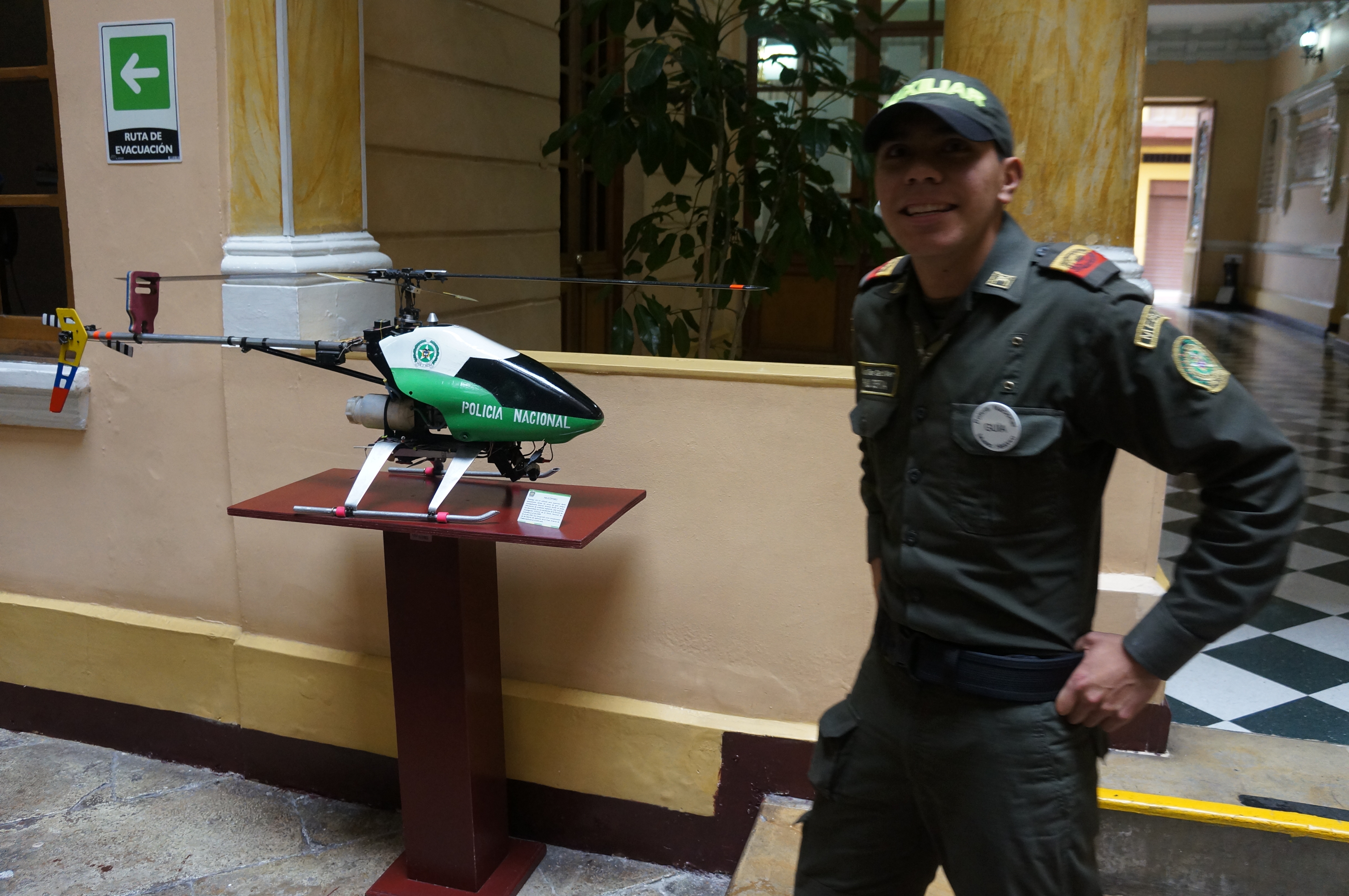 mai treji si vigilenti continuam turul, dintr-o poza zambeste un nene cu chipiu, e fostul sef al politiei columbiene, generalul iaramproblemecumemoria, in 2010 declarat cel mai bun politist din lume, uns presedinte al ameripol, aia mica se da cu curul de pamant de plictiseala in timp ce tac’su lacrimeaza privindu-si bosul, paul spune ca politia a fost reformata, zau, cind? in ‘93 dupa un scandal national care a dus la concedierea a peste 800 de politisti, retrogradarea altora si pensionarea mosulanilor corupti, dar ce s-a-ntamplat fratelo, o doamna a venit cu fiica’sa la politie sa-si caute barbatul politist, trebuia sa-i dea bani pentru scoala fetei, mama a ramas la poarta si a trimis fata sa-si caute tatal, un coleg politist s-a oferit sa o ajute sa-l dibuie in sediu, a varat-o-n toaleta, a violat-o si a omorat-o, haoleu, ce mizerie, atunci sare paul, acum totul e minunat, suntem cei mai buni din lume si uite o bomboana si un afis sa demonstram asta.