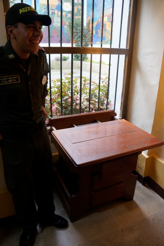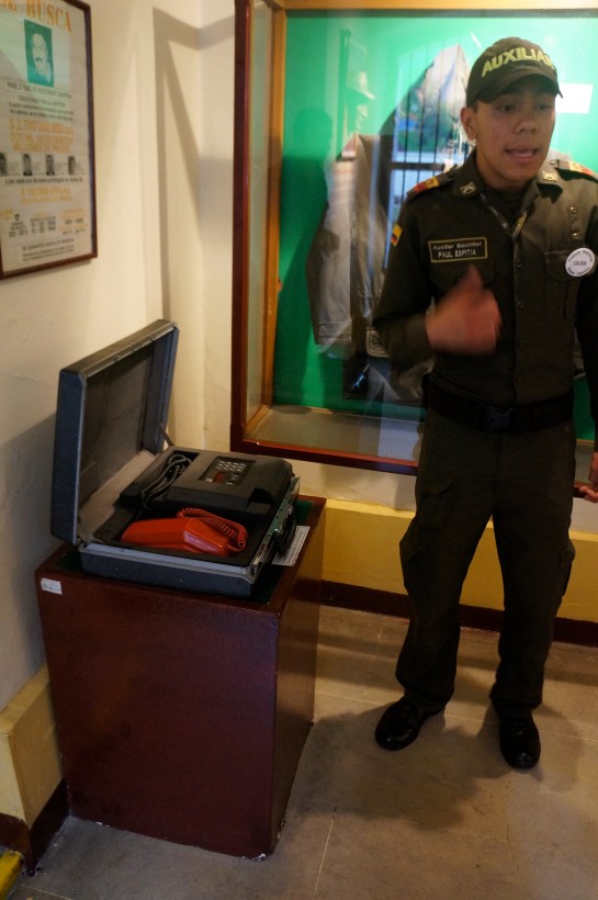 paul miller ne intampina zambitor in buza sediului muzeului politiei din bogota, niste flacai isi ard palme ostasesti in dosul receptiei, bine ati venit, sa-ncepem turul, in spatele lui tropaie incotosmanati in geci de iarna un omulet, femeia lui si copilele, o adolescenta cu mustacioara si o fetita de vreo 4 ani, contraintuitiv paul miller habar n-are engleza, tac’su e fan paul mccartney, aseara a fost pe stadion sa cante love, love me do, ok, deci am rezolvat misterul cu paul dar miller? o fi fost cineva in familie morar, asta nu stie, in rest e doldora de povestioare: vedeti elicopterul asta, are camera speciala care sta geana pe infractori, il folosim la meciuri cind e halimaiul mare si ochiu nu ajuta, masina asta este o tiparnita foarte scumpa care scotea revista politiei, functiona cu cupru si crom, crapau operatorii de cancer de piele, dar mureau mandri ca au muncit la prima publicatie din columbia, basca se dadea gratuit, probabil traiau din publicitate.