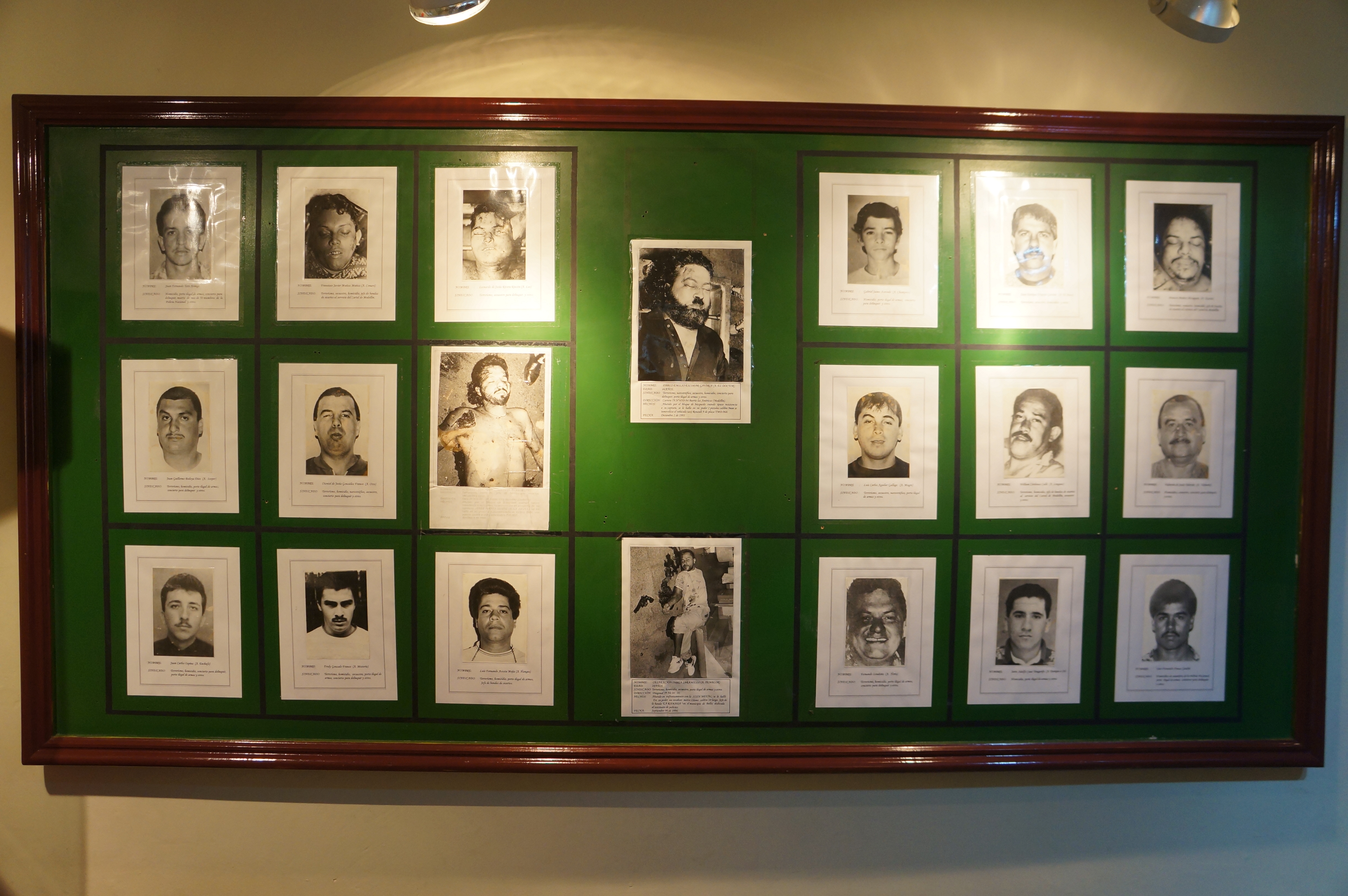 fetita de 4 ani isi trage nasul privind cu ochii mari fotografiile alb-negru ale unor nenici evident decedati, o sa propun lu panini sa scoata o serie cu echipa de narcosi, paul explica entuziast-asta e cutarica din cartelul de la medellin care a dat informatii despre pablo si a fost omorat, capul despicat, mana dreapta taiata si-nfipta-n tzeasta in chip de salut militar, art direction deci, astalalt e x-ulescu, a fost ucis de politie la 19 ani dupa ce copilasul a omorat in ultimii 4 ani 40 de politisti, precoce, si asta e cutarelu care a dat informatii cartelului din cali si a fost matzit, gatul taiat si limba scoasa cravata, a la mafia italiana, eleganta, cind a inceput sa nu mai fie de joaca escobar s-a predat si a stat un an la inchisoare, vorba vine, avea 2 piscine, cablu, prostituate, americanii au insistat pe linga guvernul columbian sa-l extradeze, pablito a evadat si ani de zile nu a fost prins, uite asta era telefonul lui, un soi de magnetofon kashtan zace gras intr-o vitrina, telefonu e smecherie, avea 2 cipuri si o cheie, dupa 2 minute de conversatie redirectiona automat apelul pe o alta linie, imposibil sa fie urmarit, pai si atunci cum l-ati prins viclenilor?