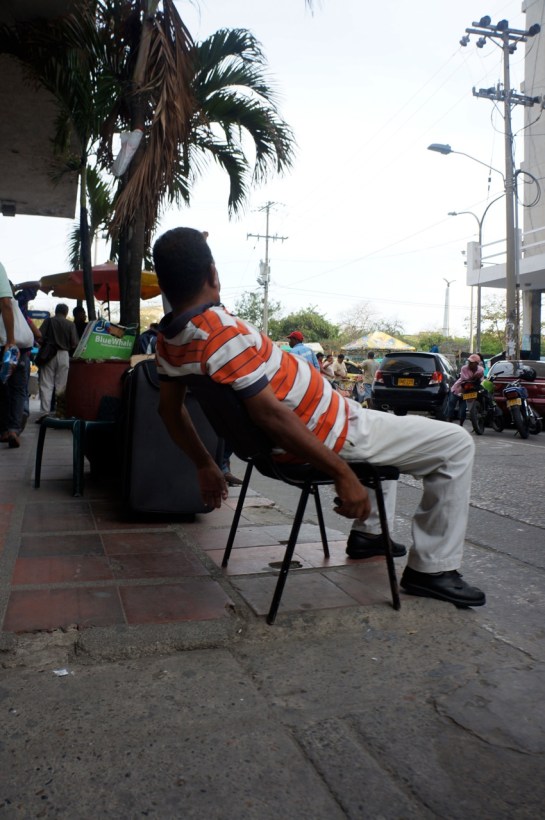 in santa marta nu mai pute a caraibe cangrenoase, muntele creste linga sosea si pe el sunt sere si gradini imense, soferul depaseste in curba, numai in curbe, motorul mugeste wroooooooah, o madama in fatza mea tocmai a venit din spania, isi urla patriotismul incercand sa acopere huruitul, colum-bia e cea mai frumoasa tara din lumeee, ceeeee spui? columbiaaaa e cea mai frumoasaaa tara din lumeee, oameniii sunt calzi, si caldura e data pe maxim, fac condens sub nas cind cobor la riohacha-capitala indienilor wayoo, 42 de grade si umezeala 90%, huh, un nene in camasa incearca sa ma bage intr-un bus de cartagena, nu coane, vreau la cabo de la vela, isi scarpina nedumerirea dupa ureche, asaaa deci, vino cu mine, ma preda unui alt domn in camasa, da? vreau la cabo de la vela, asta nu vorbeste, imi face-un semn cu degetul, atarn 6 minute in fatza ghiseului unde scrie ceva, sa vezi ca e cursa directa imi zic, nici vorba, prostia se dilata la caldura, si naivitatea, omul a uitat de mine si cind ma vede se anima, cabo de la vela zici, o iei la dreapta si mergi, mergi, mergi pina ajungi la un semn care zice ca de acolo sunt masini de uribia, te sui in ea, mergi vreo ora jumate si dupa, din uribia iei o masina de cabo de la vela, dar azi nu, ca-i tarziu.