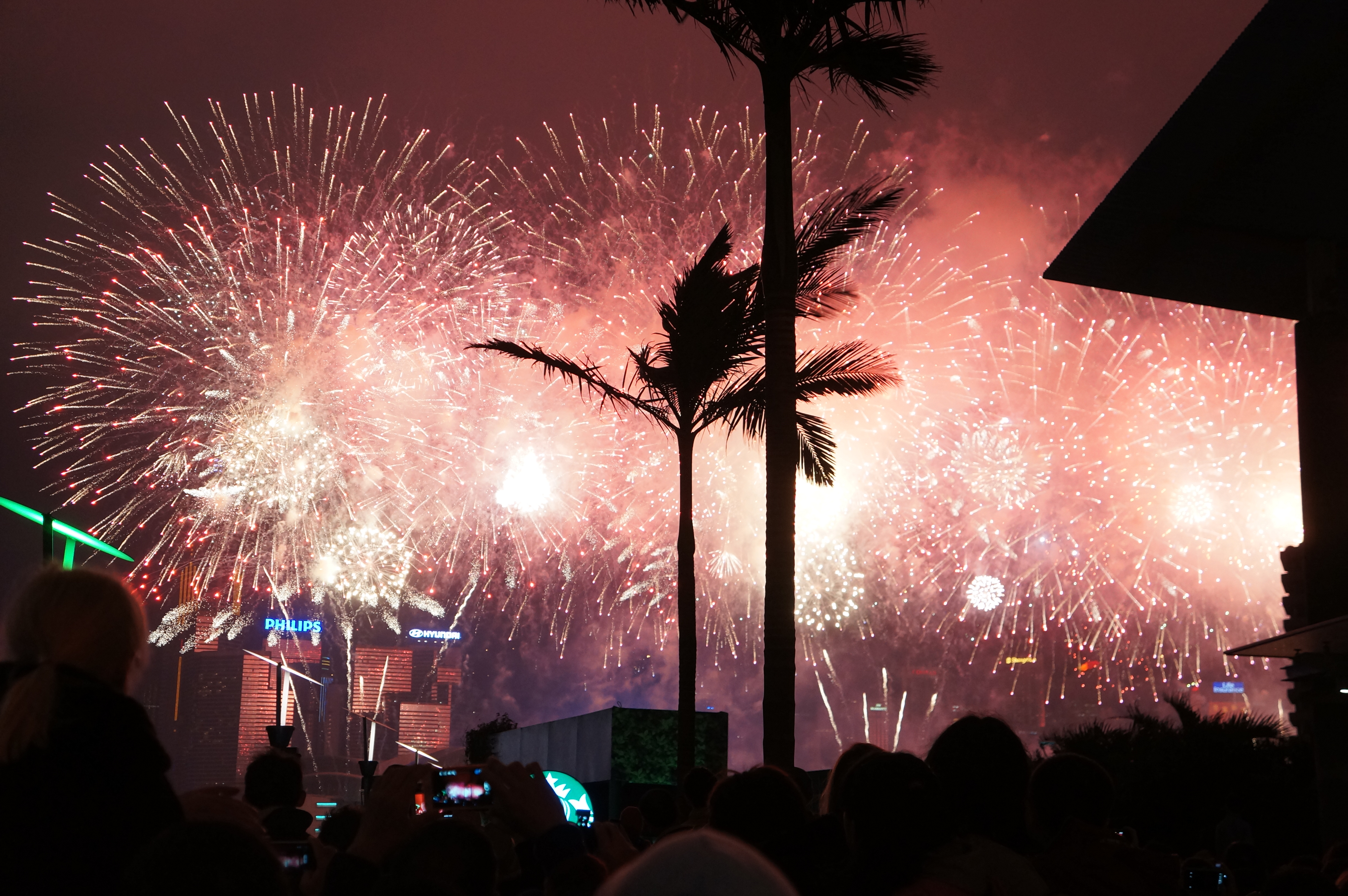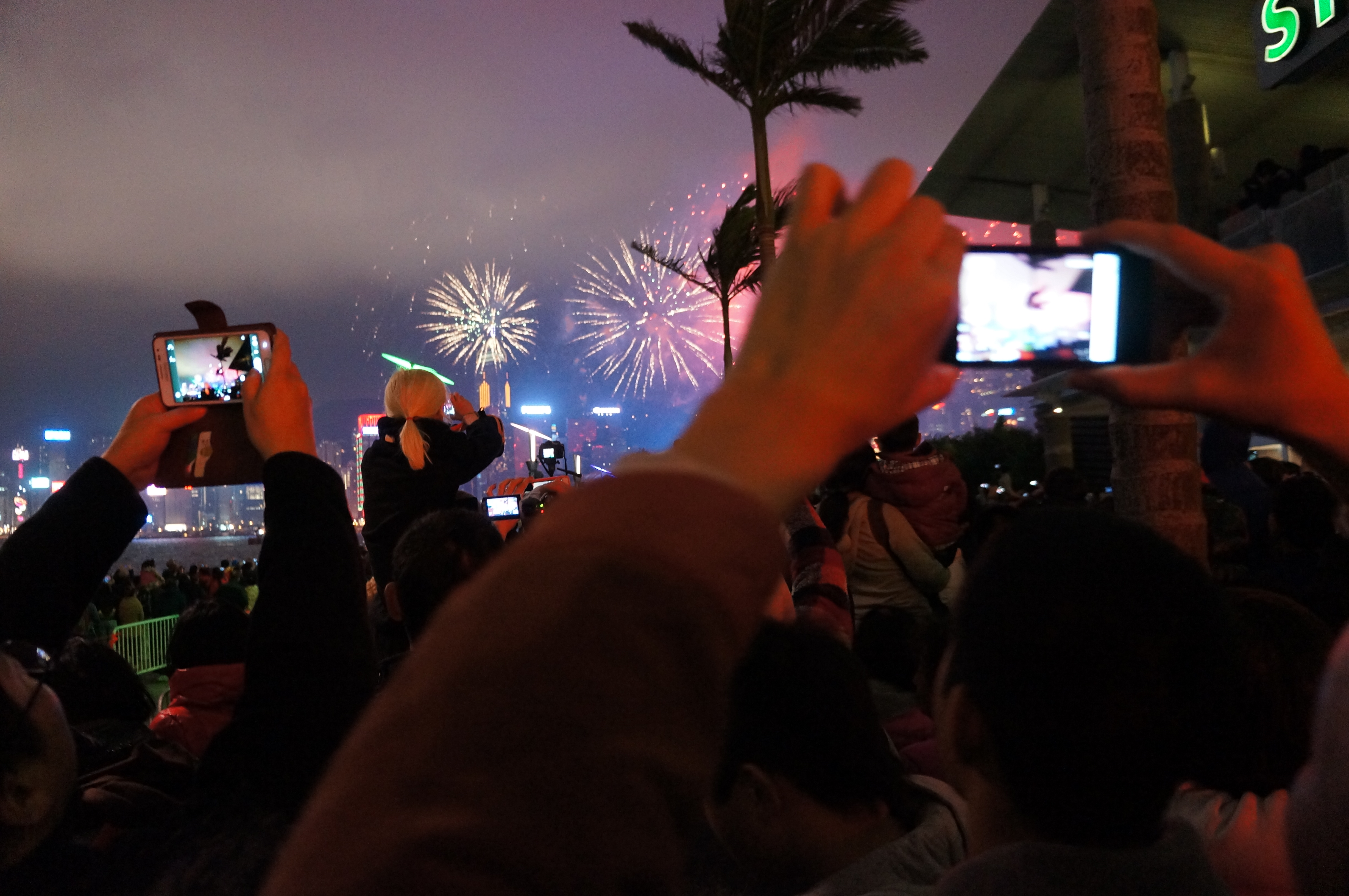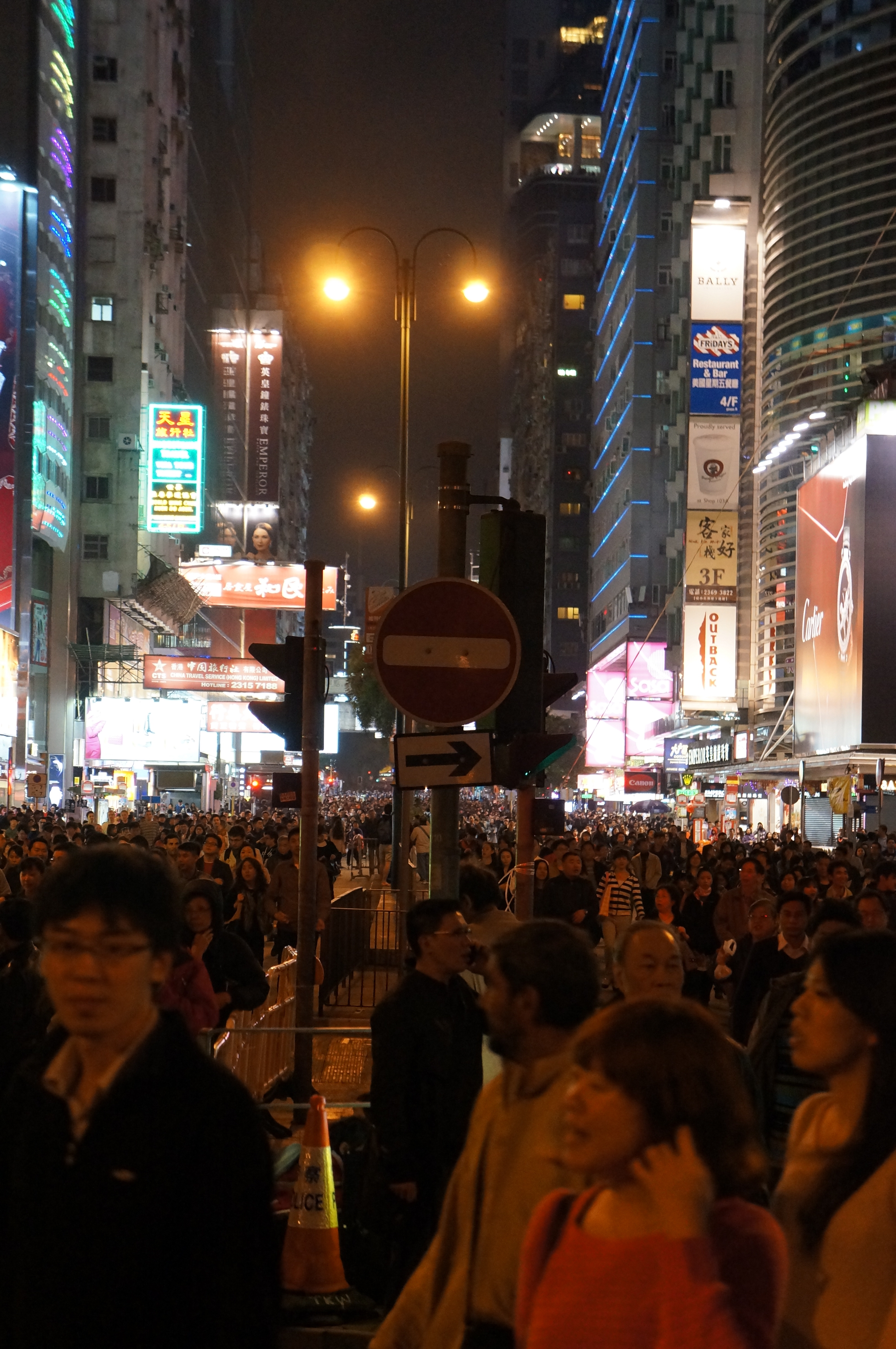 nathan road si canton road sunt inchise, din nord coboara, umar linga umar, batalioane si familioane, exod, tsim sha tsuiul se goleste, continentul se-ndoaie sub multimea bulucita la buza apei, mii de politisti aliniaza bulevardele, pe cel din fatza de la hotel peninsula l-au inchis complet, de ce? pentru masinile de salvare; dirijata printre gardulete natiunea ingroasa crusta de omenire prinsa la marginea lui victoria bay, circulati-circulati, bastoanele flutura in aer, fluiere-ti inteapa timpanul, la muzeul de arta nu se mai poate intra, ocoliti-ocoliti, pe star avenue refugiatii sunt ciuciti, zacand nepasatori pe urma sfanta a manutelor infipte-n asfalt ale lui jackie chan, catarandu-se pe bustul incordat sub bronz al lui bruce lee, asteapta de 3-4 ore deja aici, nu putem ramine, ne scurgem sute de oameni, incet-incet, inspre est, la marriott incerc o diversiune: cu pasi mari dau sa trec de un chinez de 2 metri, costum, casca-n ureche, “sunteti oaspetele nostru?”, nu, dar vreau sa beau un spritz la barul de la ultimul etaj, “intr-o seara ca asta, totul e rezervat. totul e rezervat cu 1 luna jumate inainte, imi pare rau”, ultima sansa, starbucksul din dreapta, tzasnesc printre tufe si iata-ma pe platforma, forez folosind coatele si-mi infig picioarele bine-bine-n scandura terasei, 40 de minute trebuie sa rezist aici si o sa am o vedere geniala la faimoasele artificii de anul nou din hong kong, cele mai FRUMOASE DIN LUMEEEE!!!!