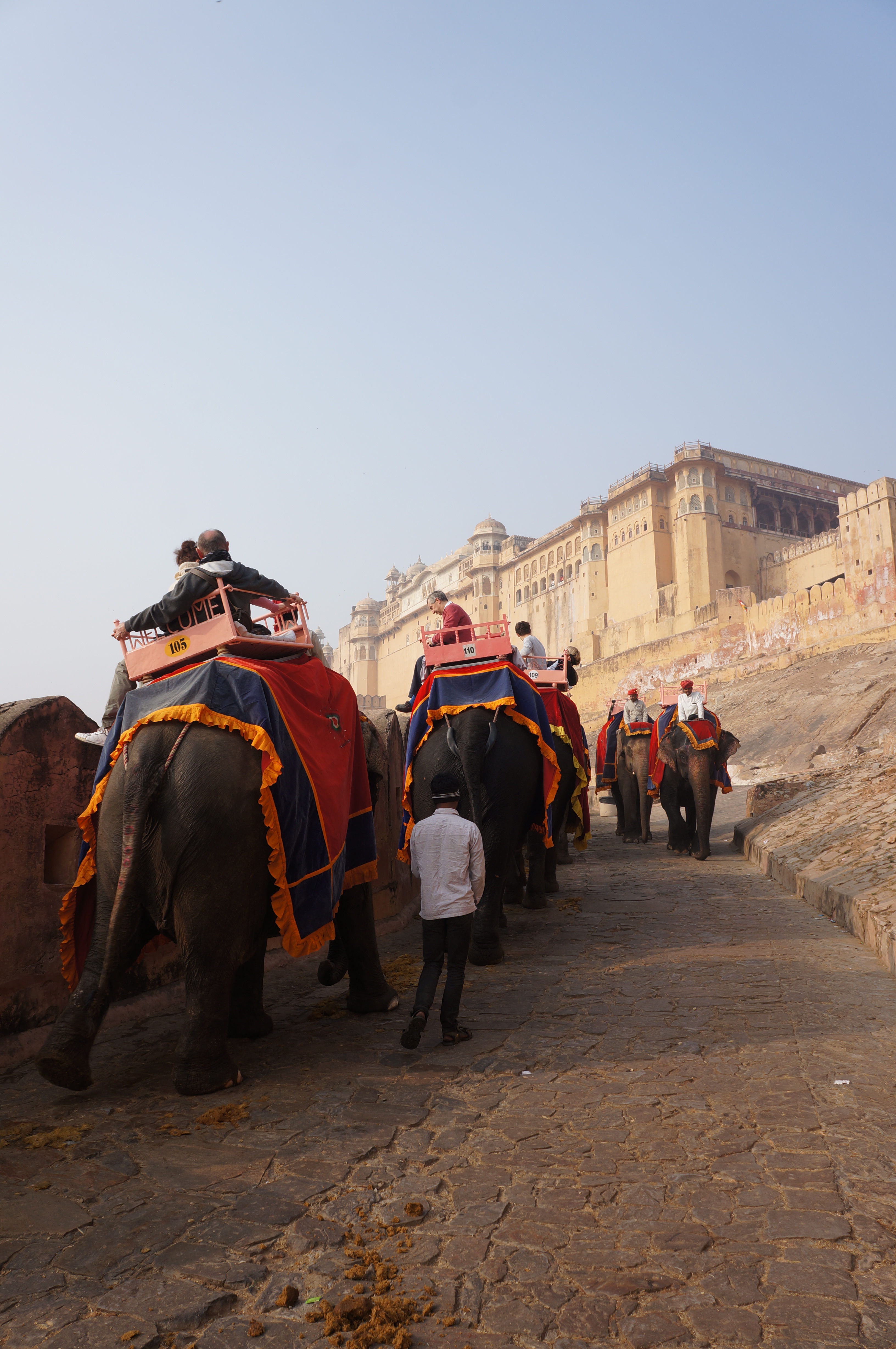 rahul lasa mobilul din mana: “pentru ca elefantii sunt tratati prost. muncesc din greu, turistii vad asta, se simt prost si nu mai vor sa faca turul, asa ca proprietarii pierd din ce in ce mai multi bani si nu au din ce sa ii intretina. chiar asa, stii cat costa intretinerea unui elefant pe zi? 3000 de rupee (50 de dolari). de unde faci rost de banii astia? ii duci la fort, sa care turisti. e un cerc vicios.”. un elefant mananca de 4 ori pe zi, grau amestecat cu un anumit tip de iarba, trestie de zahar si chapati. doar vara primesc banane pentru ca fac usor intoxicatii de la ele, atunci cind nu sunt indeajuns de coapte. de fapt elefantii sunt niste animale ingrozitor de sensibile. eu sunt in tricou, dar lui shakuh ii e frig. nu dardaie, nu e albastra de frig, dar rahul zice ca 19 grade nu este defel temperatura ideala, pentru ca elefantii sunt animale de padure tropicala. in rajahstan au ajuns adusi de maharajahi, ca sa serveasca patria, luptand in armata. acum poti sa inchiriezi elefanti pentru nunti, botezuri, cumetrii. “eu nu fac asta. respect animalele si stiu ca si turistii nu vor sa le vada exploatate. elefantastic merge excelent. am aparut in lonely planet fara sa fac niciun pic de tamtam sau reclama. sunt foarte multumit, de fapt as fi daca nu ar fi aparut deja o gramada de siteuri care ma copiaza. a trebuit sa imi pun poza mare pe facebook si pe site, ca sa stie lumea cum arat, ca s-a umplut jaipurul de oameni pe care ii cheama rahul si toti au cate un parc de elefanti”.